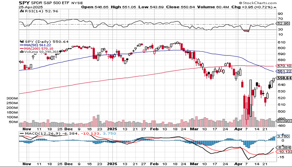After falling 20% from all-time high, S&P 500 has been in a bouncing mode and finally got to the resistance zone of 550 – 570 (SPY) we talked about before. We believe this resistance will prove too problematic to overcome. This is the place to establish some short positions or some hedges. It is a bad idea to be naked long or naked short in this environment due to the fact that our current government refuses to provide stability. Any tweet can send the market up or down 5% in a matter of minutes. Be hedged!!!