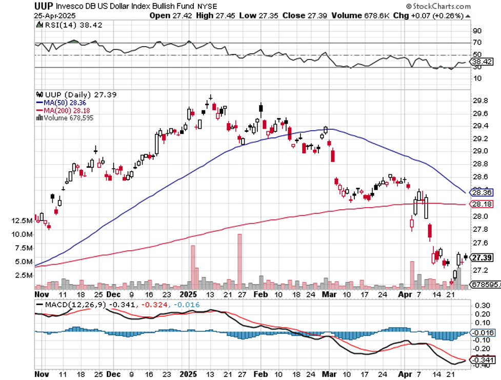 The Dollar is being sold by everyone in the world because our policies are now a laughingstock. Lower dollar can make American products more attractive, but the world is now boycotting our products, and the cheaper currency is nothing compared to the tariffs. A rebound is expected, but only a change in policy will reverse this trend.